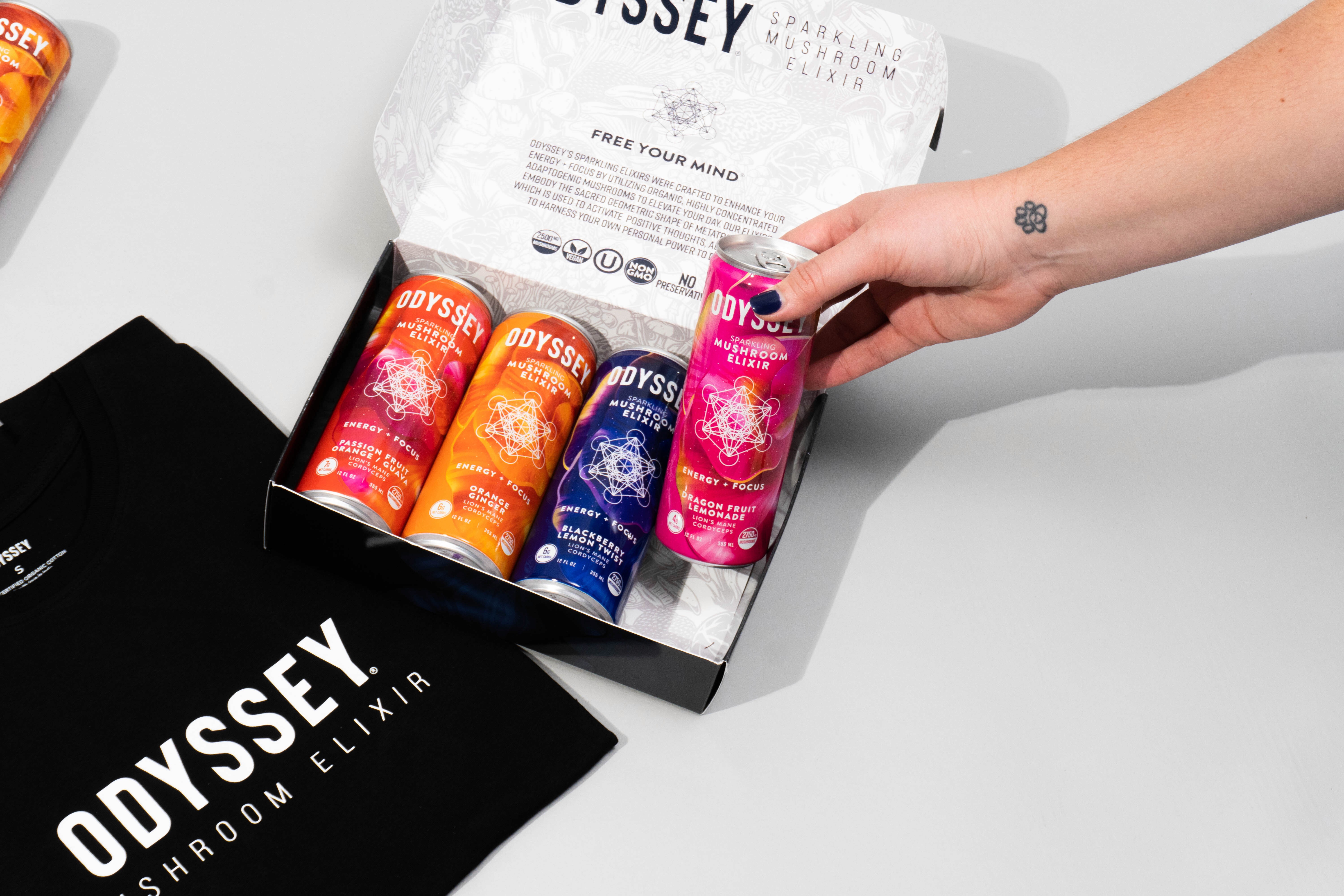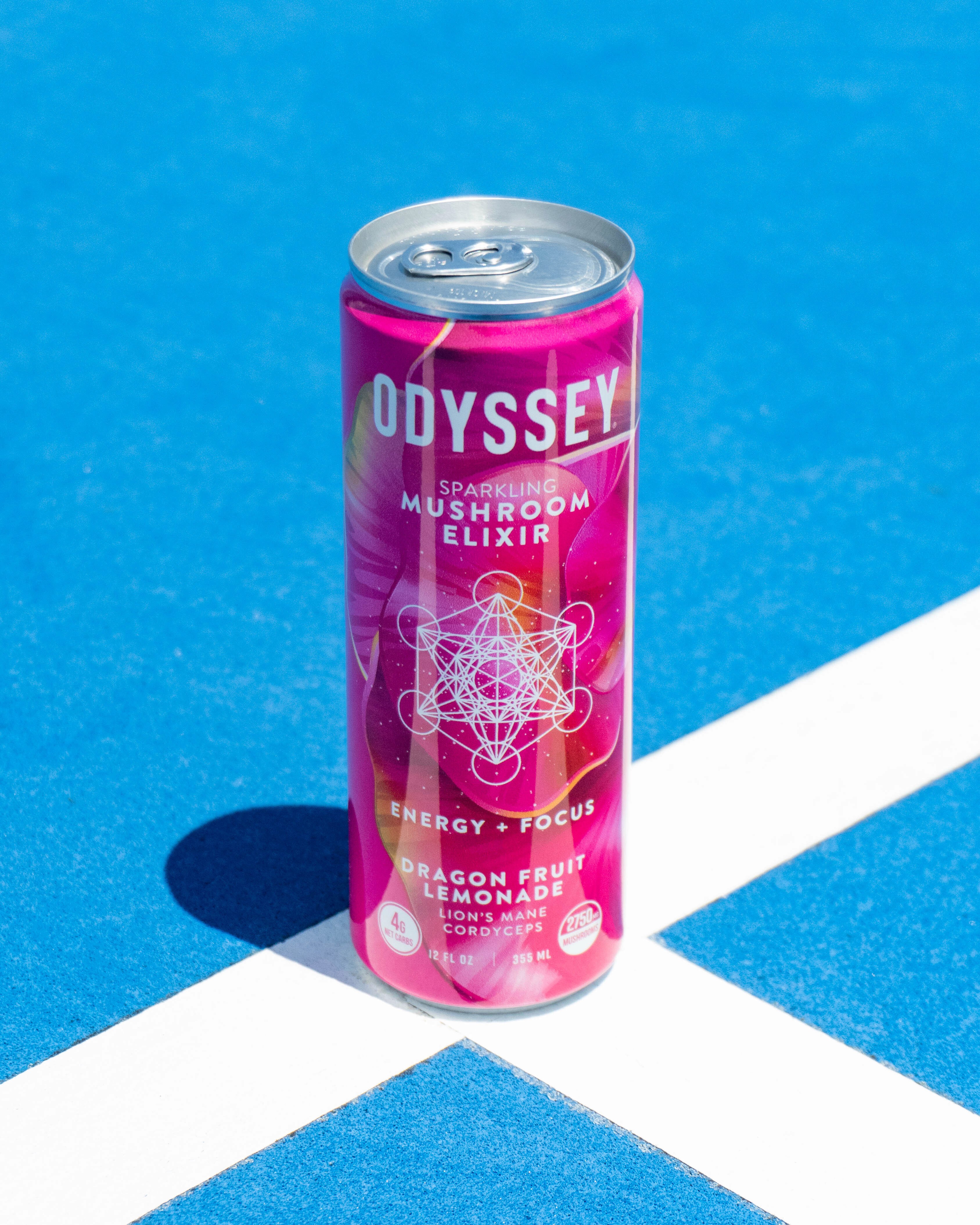 Odyssey is an energy drink with mushroom supplements that promotes focus. To amplify their social channels and promote the product we curated creative product and lifestyle imagery.